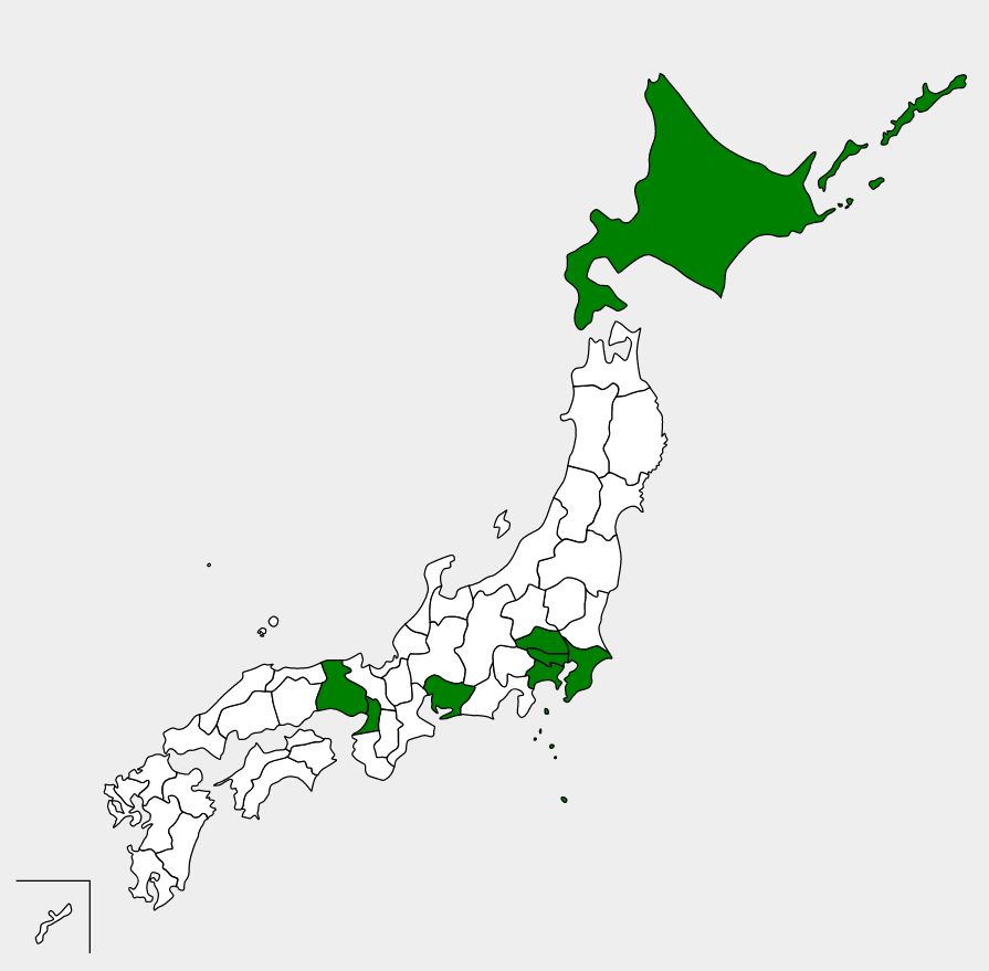 答えは上から8番目。つまり47都道府県のうちわずか8都道府県で総人口の半分を占めていることになる。 1.東京都 14,047,594 人 2.神奈川県 9,237,337 3.大阪府 8,837,685 4.愛知県 7,542,415 5.埼玉県 7,344,765 6.千葉県 6,284,480 7.兵庫県 5,465,002 8.北海道 5,224,614 =============== 計 63,983,892 ↓ 緑色の都道府県の人口を合わせると日本全体の過半数になる ちなみに可住地面積でみた場合、上記8都道府県が占めるのは全体の31.6%。 つまり日本列島で人が住める場所のおよそ3割に全人口の半分以上が住み、残りが7割の場所に住んでいることになる。 |