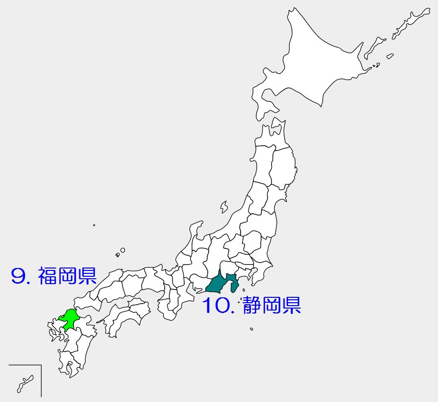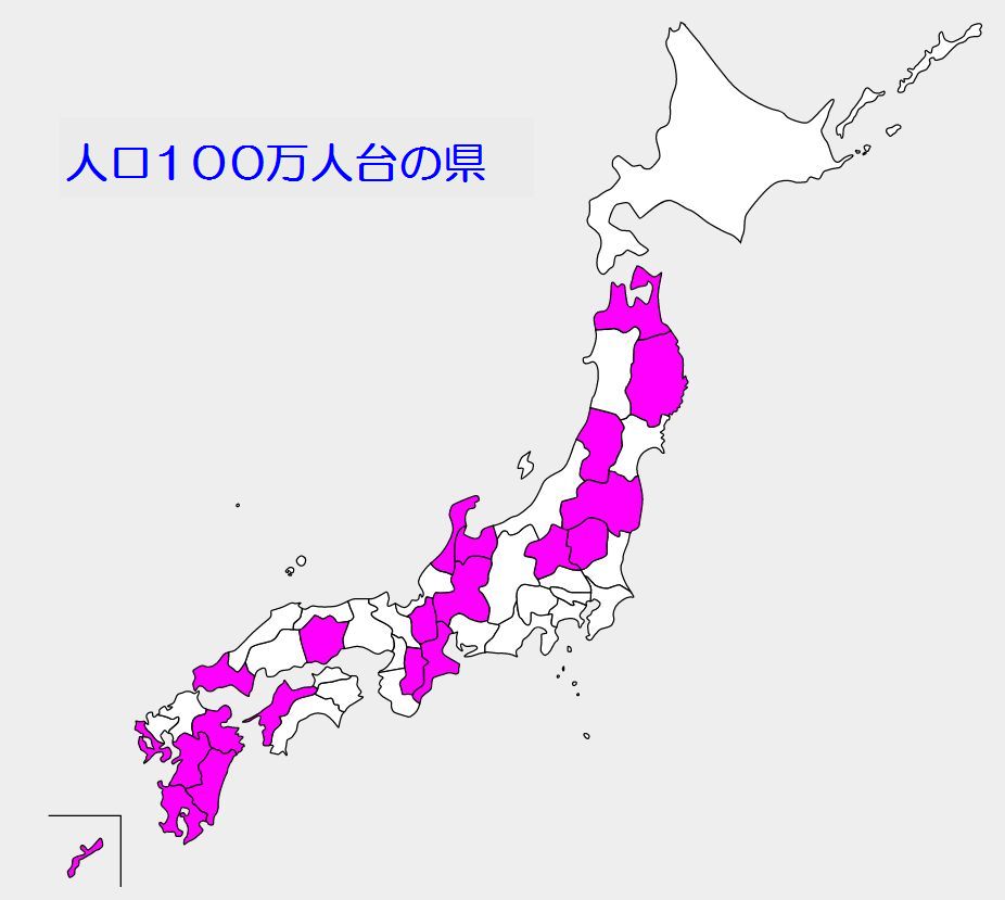 答えは上から8番目。つまり47都道府県のうちわずか8都道府県で総人口の半分を占めていることになる。 1.東京都 14,047,594 人 2.神奈川県 9,237,337 3.大阪府 8,837,685 4.愛知県 7,542,415 5.埼玉県 7,344,765 6.千葉県 6,284,480 7.兵庫県 5,465,002 8.北海道 5,224,614 =============== 計 63,983,892 ↓ 緑色の都道府県の人口を合わせると日本全体の過半数になる ちなみに可住地面積でみた場合、上記8都道府県が占めるのは全体の31.6%。 つまり日本列島で人が住める場所のおよそ3割に全人口の半分以上が住み、残りが7割の場所に住んでいることになる。 上記に続くのが 9.福岡県 およそ500万人 10.静岡県 およそ360万人 さらに 200万人台の県・・・6 100万人台の県・・・21 100万人未満の県・・10 最も多いのは100万人台の県。しかしこれを合計しても3,000万人にしかならない。 ここでも都会と地方の格差を痛感する。 PR |