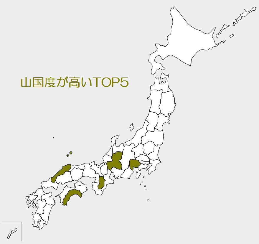 可住地面積とは、簡単に言えば人が住めそうな面積。具体的には総面積から林野面積と主な湖沼面積を引いたものだ。 可住地面積=総面積-(林野面積+湖沼面積) ここから可住地率を求めてみた。 可住地率(%)=(可住地面積÷総面積)÷100 日本の総面積は約37万㎢、可住地面積は約12万㎢。 よって、日本の可住地率は33%。 つまり 日本で人が住めそうな場所は全体の1/3程度 というわけだ。 以下、都道府県別に ① 可住地率が高いベスト5(平野度が高いTOP5) ② 平均的な可住地率(33%)に近い5県 ③ 可住地率が低い5県(山国度が高いTOP5) を見てみよう。 ① 可住地率が高いベスト5(平野度が高いTOP5) 1.大阪府 70.0% 2.埼玉県、千葉県 68.5% 4.東京都 64.8% 5.茨城県 63.8% 意外にも大阪府は平野度が高い。 他はすべて関東平野の県なのは当然と言えば当然か。 ② 平均的な可住地率(33%)に近い5県 22.青森県 33.7% 23.石川県 33.3% 24.兵庫県 33.0%(←平均に同じ) 25.滋賀県 32.3%(←琵琶湖あり) 26.岡山県 31.3% ③ 可住地率が低い5県(山国度が高いTOP5) 43.奈良県 23.1% 44.山梨県 21.3% 45.岐阜県 20.8% 46.島根県 18.9% 47.高知県 16.3% 確かに、いずれも山が多い印象がある。 ちなみに日本アルプスを抱える長野県は可住地率24%で41位だった。 元データ:総務省統計局 |
